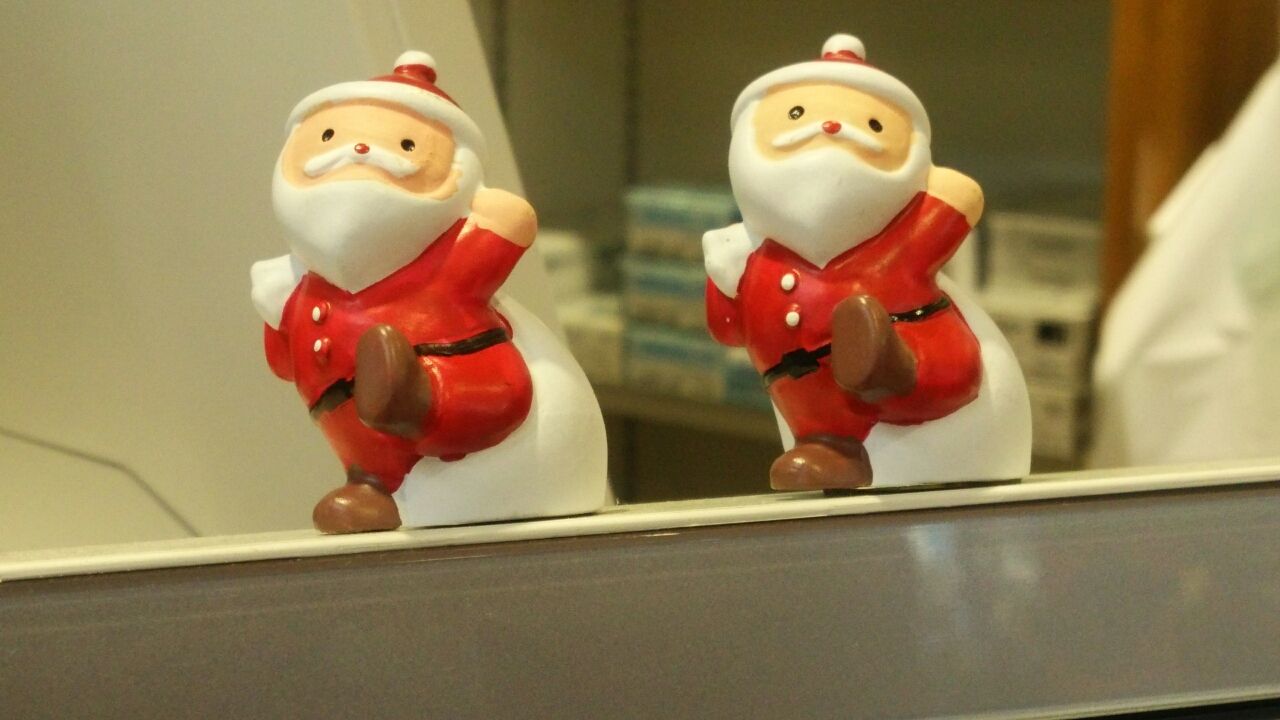 雪のないクリスマスイブ。サンタさんが、歌ってます。矢巾PA上り店のレジです。